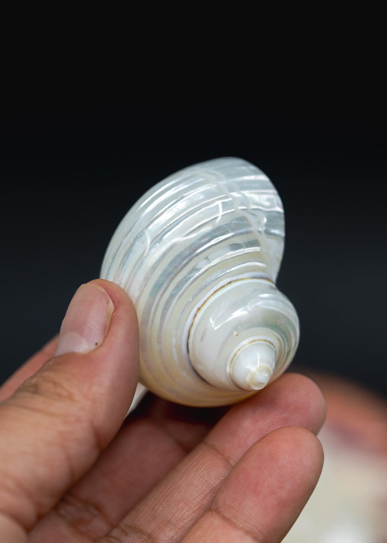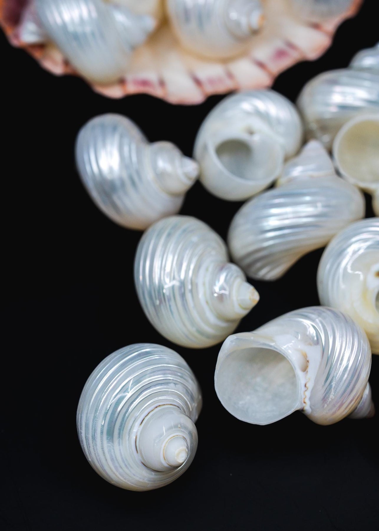 Discover the natural beauty of the ocean with our stunning High-Polished Pearlized Silver Turbo Shells Delphinula lacinata. These exquisite shells are meticulously polished to reveal their lustrous silver shine, making them ideal for jewelry making, craft projects, or home decor.