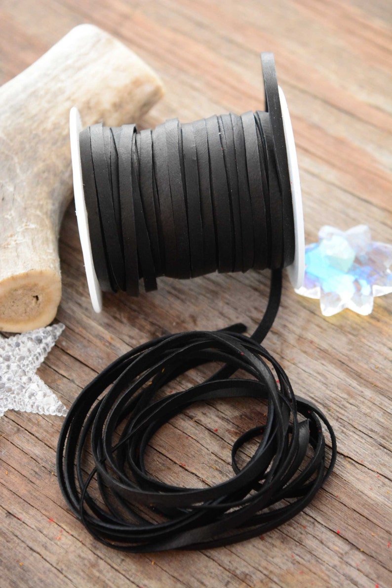 Black: 5mm Deer Suede Lace, Leather Strap for Jewelry and Crafts, 5 Feet or Full Spool