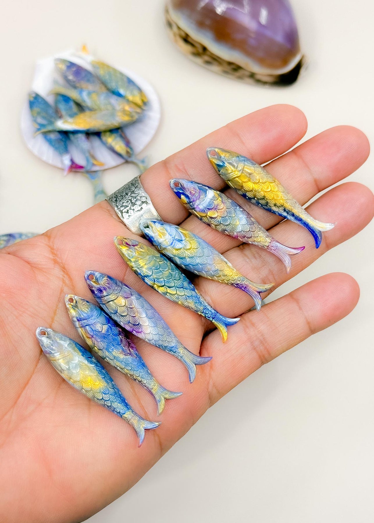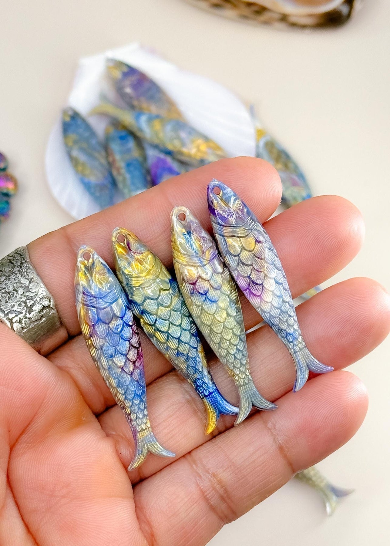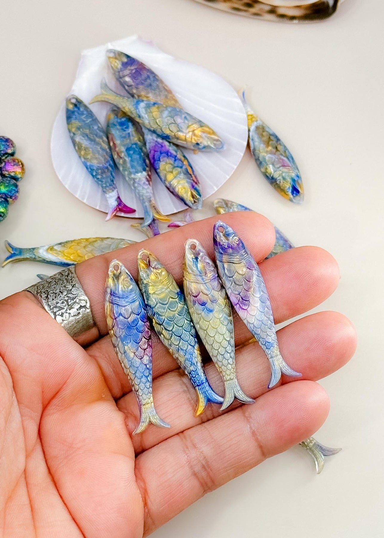 Whether you're crafting ocean-inspired jewelry or adding a little "good juju" to your next project, this fish is more than just a charm-it's a vibe. Each one is cast individually, so no two fish are exactly alike, just like the stars. Use it in celestial necklaces, boho bracelets, keychains, or even as a lucky amulet. It's playful, magical, and full of personality.