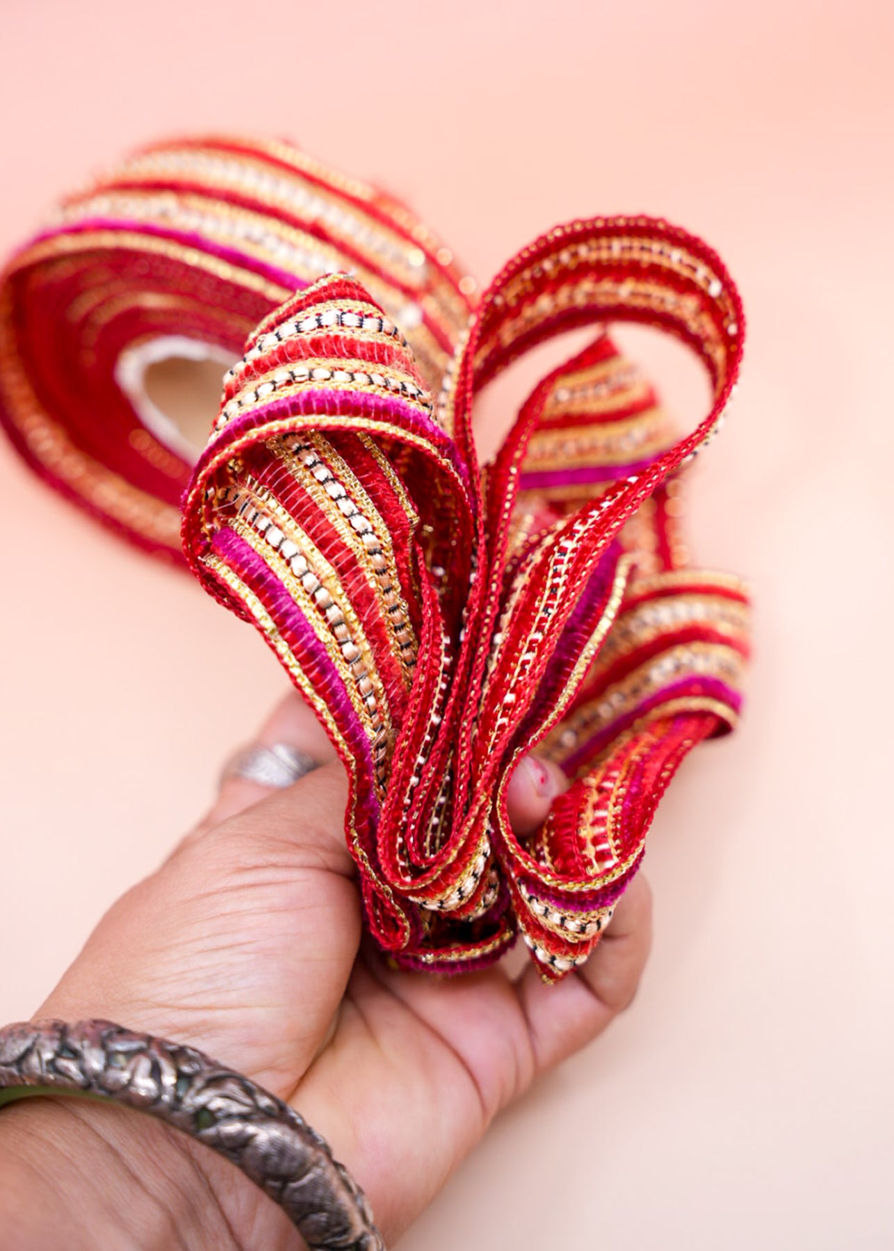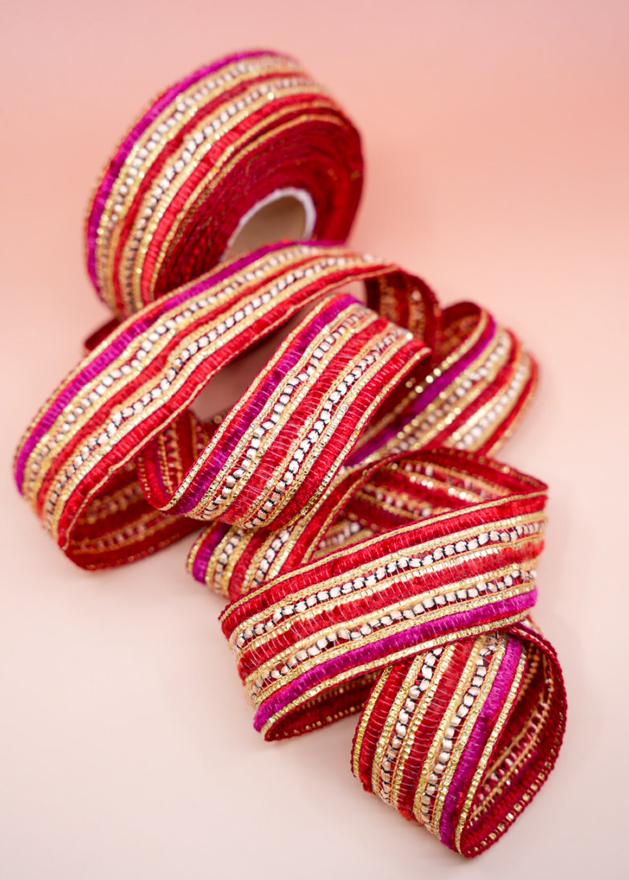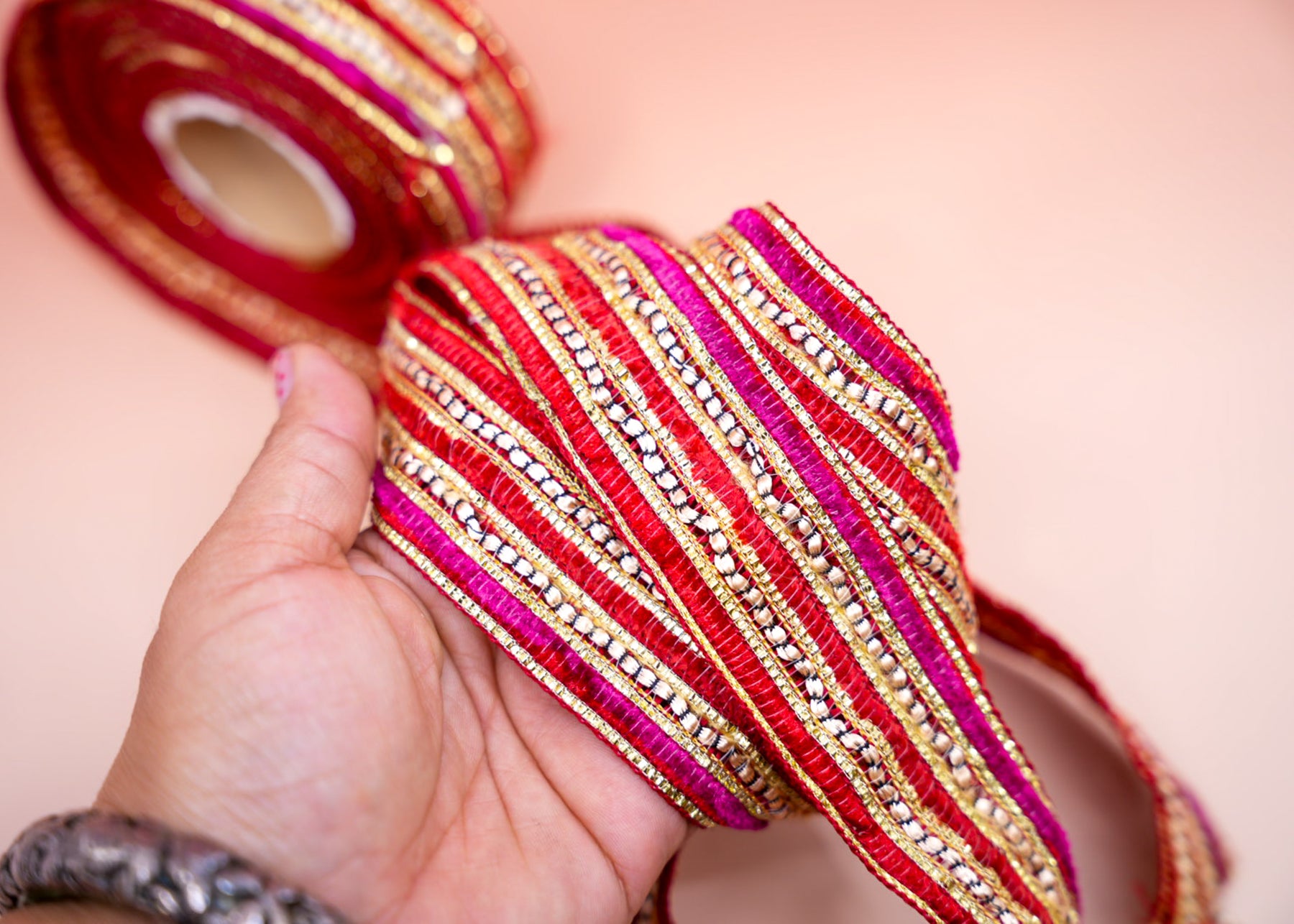 Red Pink Gold Sparkle Saree Border Trim, 1.5 Inch | | Embellished Indian Lace by Yard