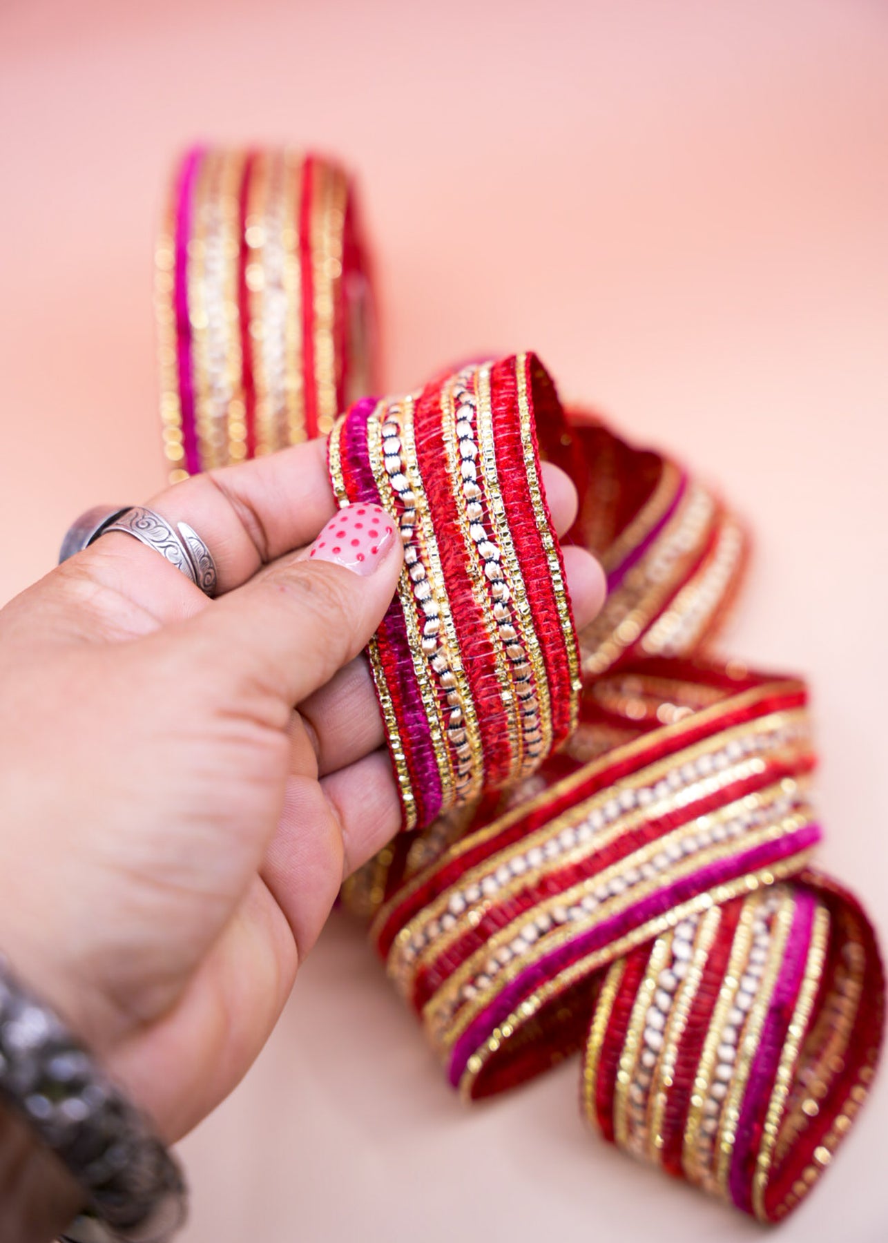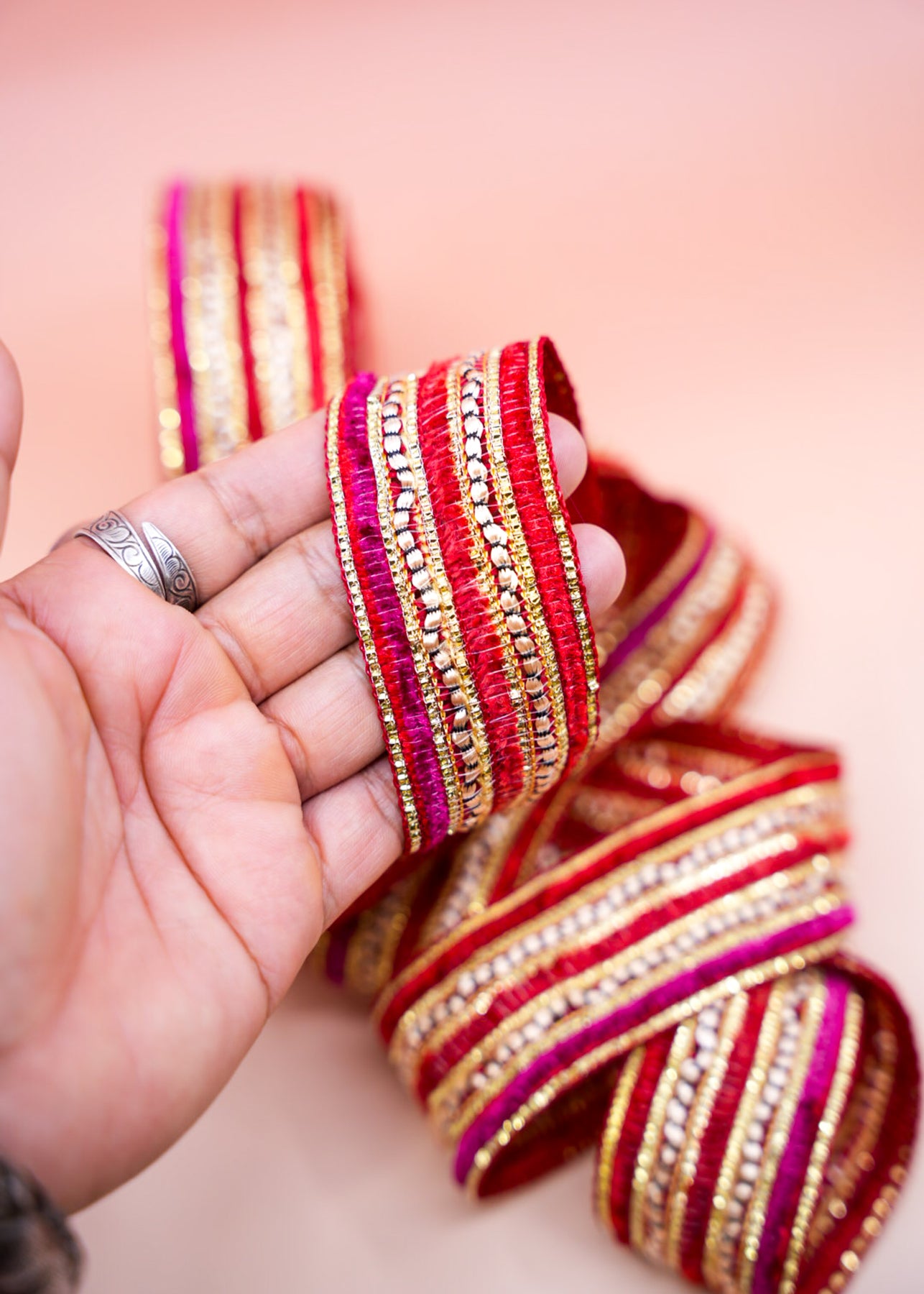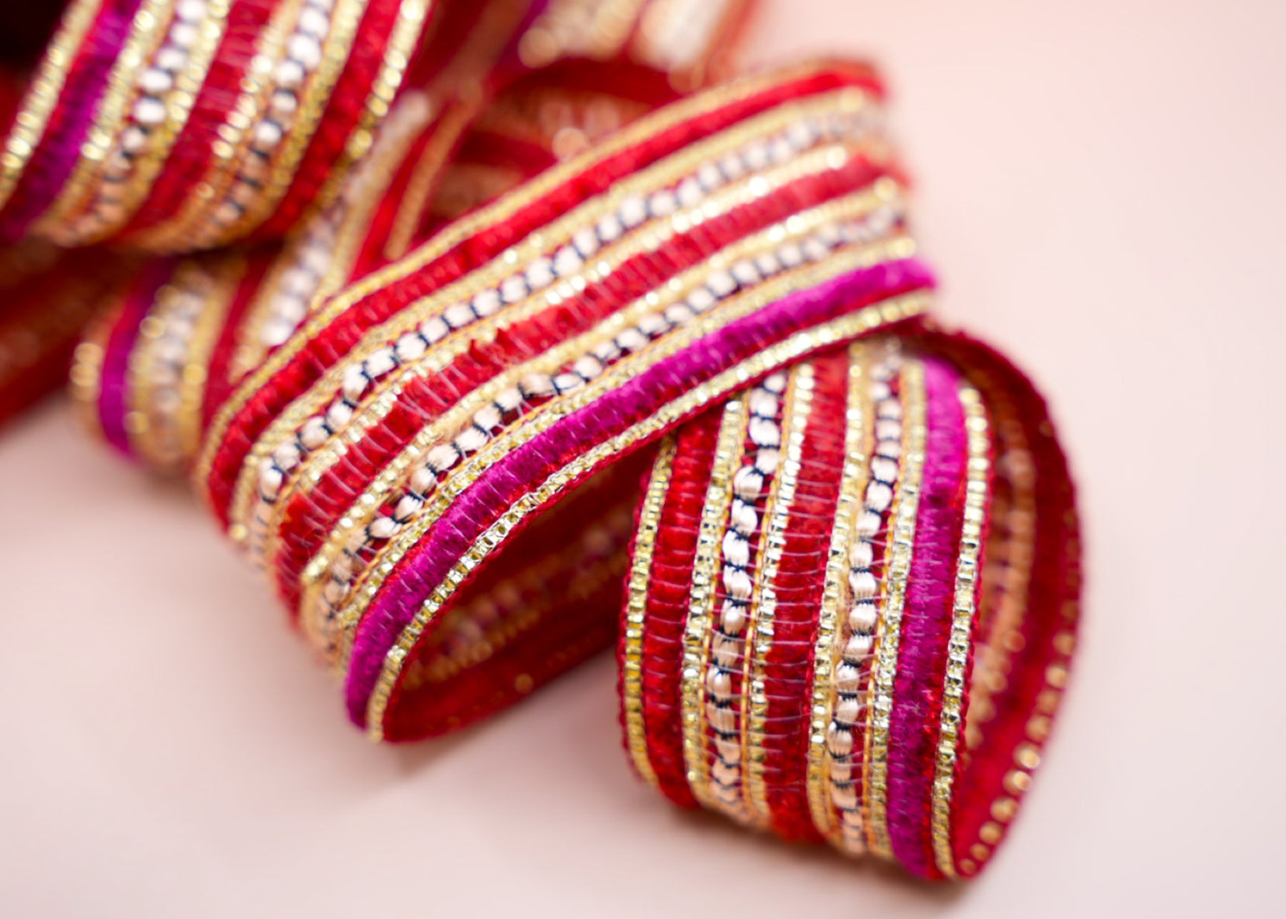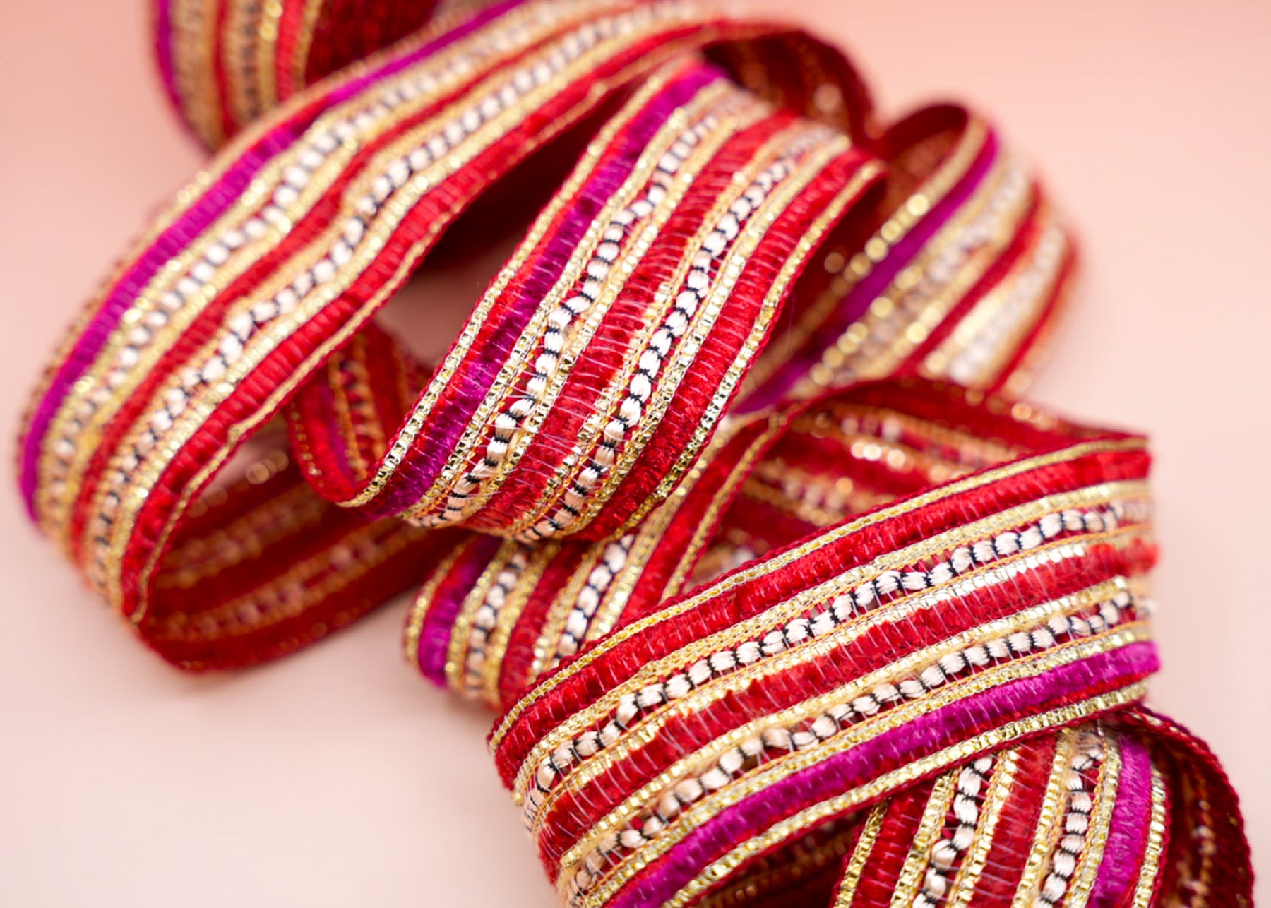 Red Pink Gold Sparkle Saree Border Trim, 1.5 Inch | | Embellished Indian Lace by Yard