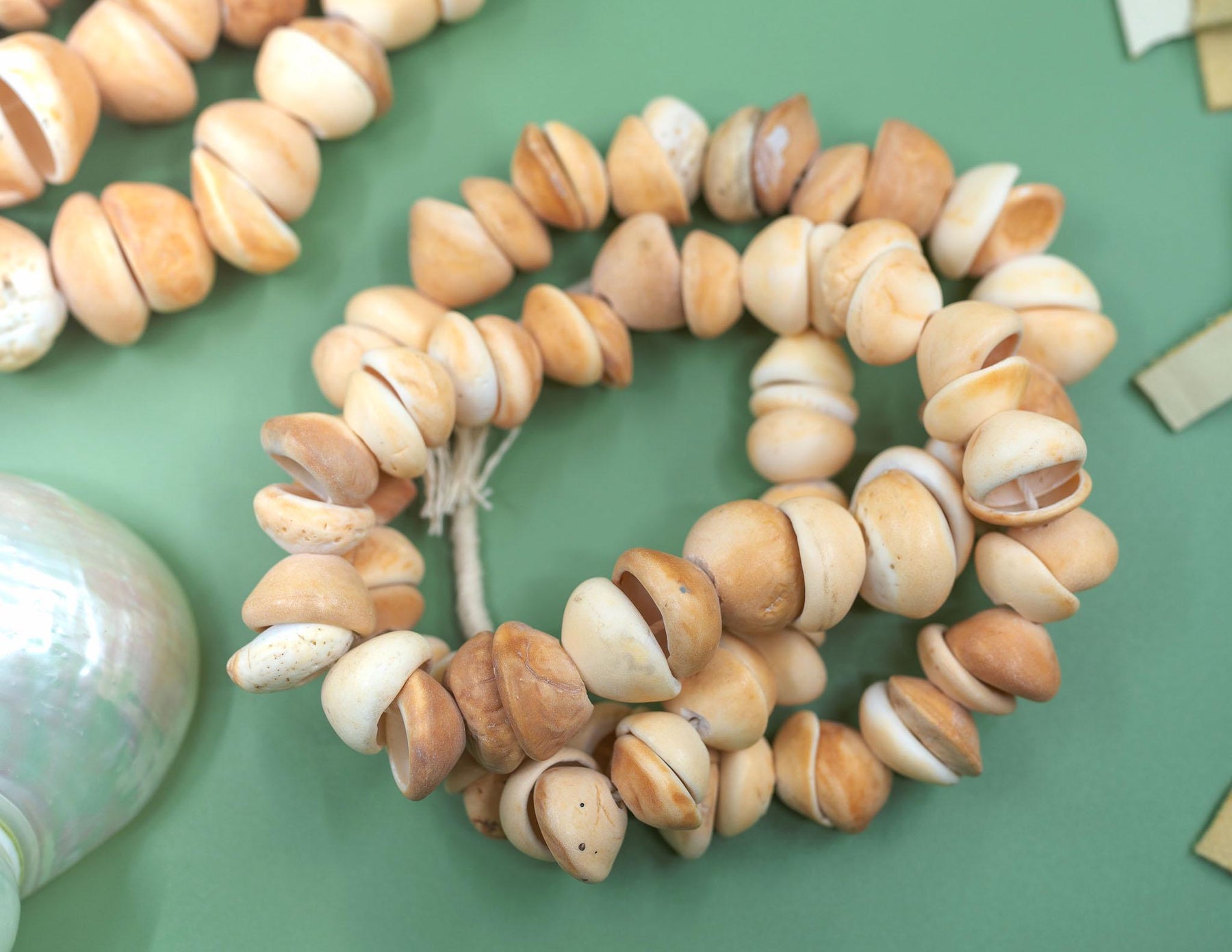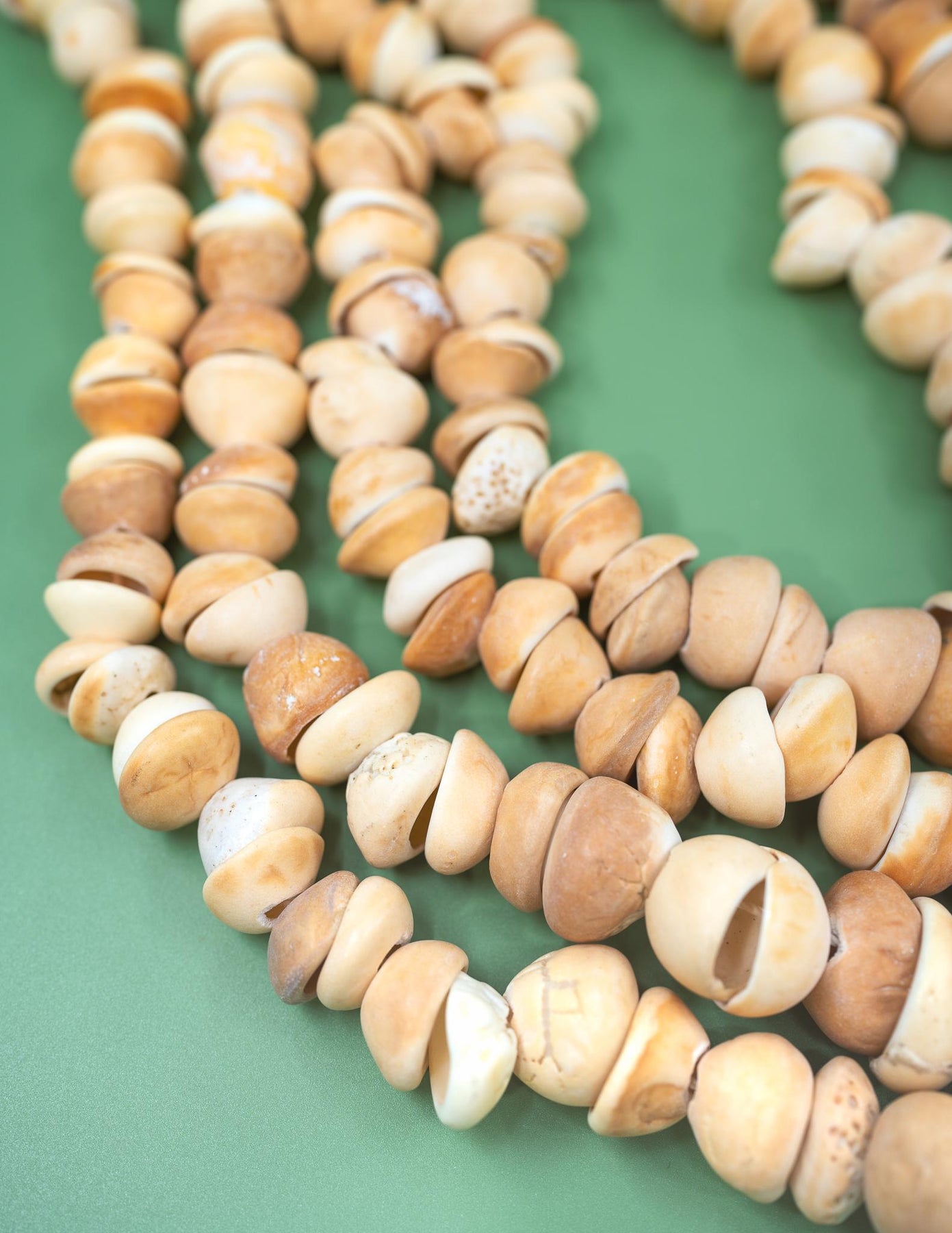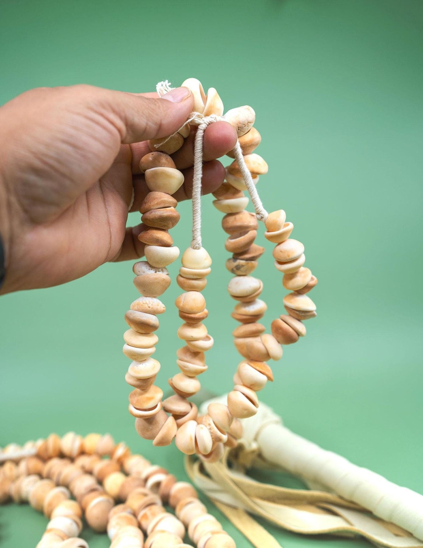 African Cone Shell Beads Necklace - 31 Inches, 80 plus beads | Unique Hand-Drilled Light Brown Shell Beads, African Seashells