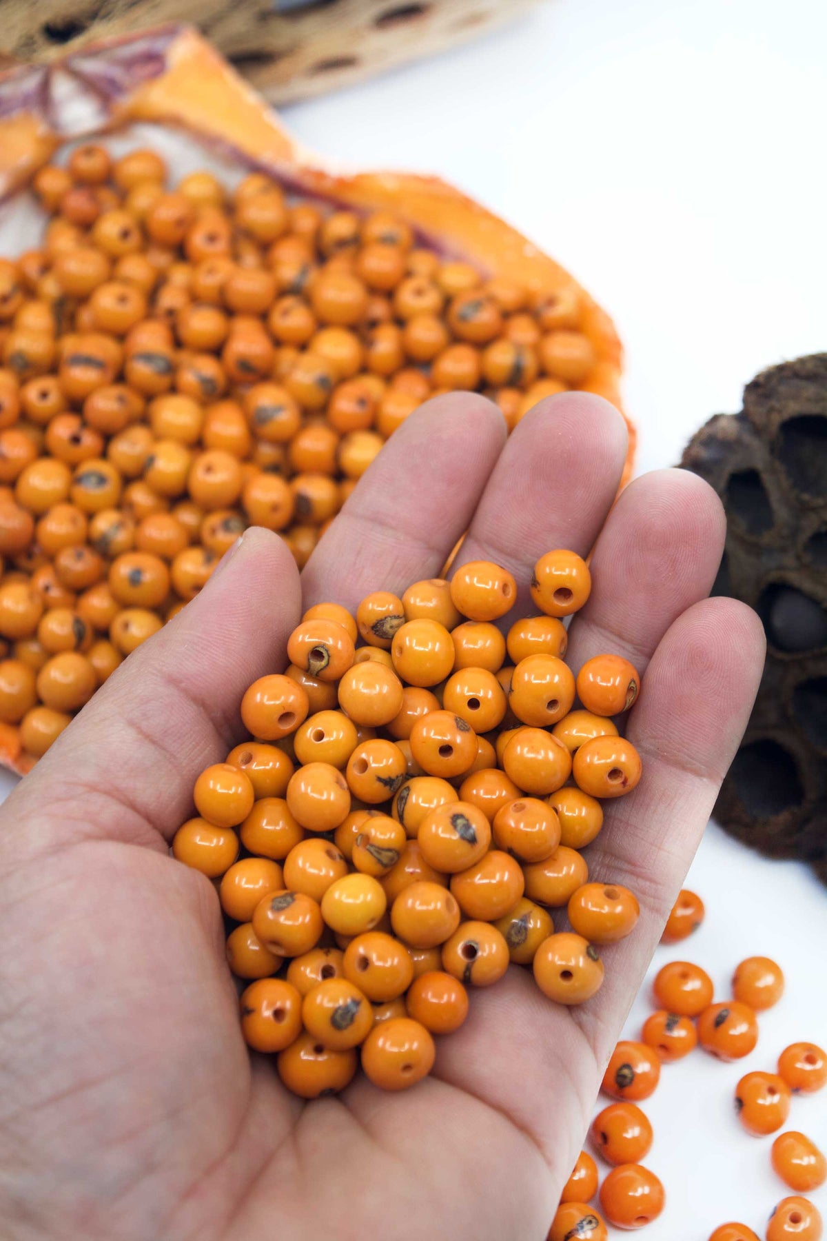 Apricot Orange Acai Beads from South America, 8-10mm, Eco-Friendly Beads, Natural Seeds, DIY Jewelry Making Supplies
