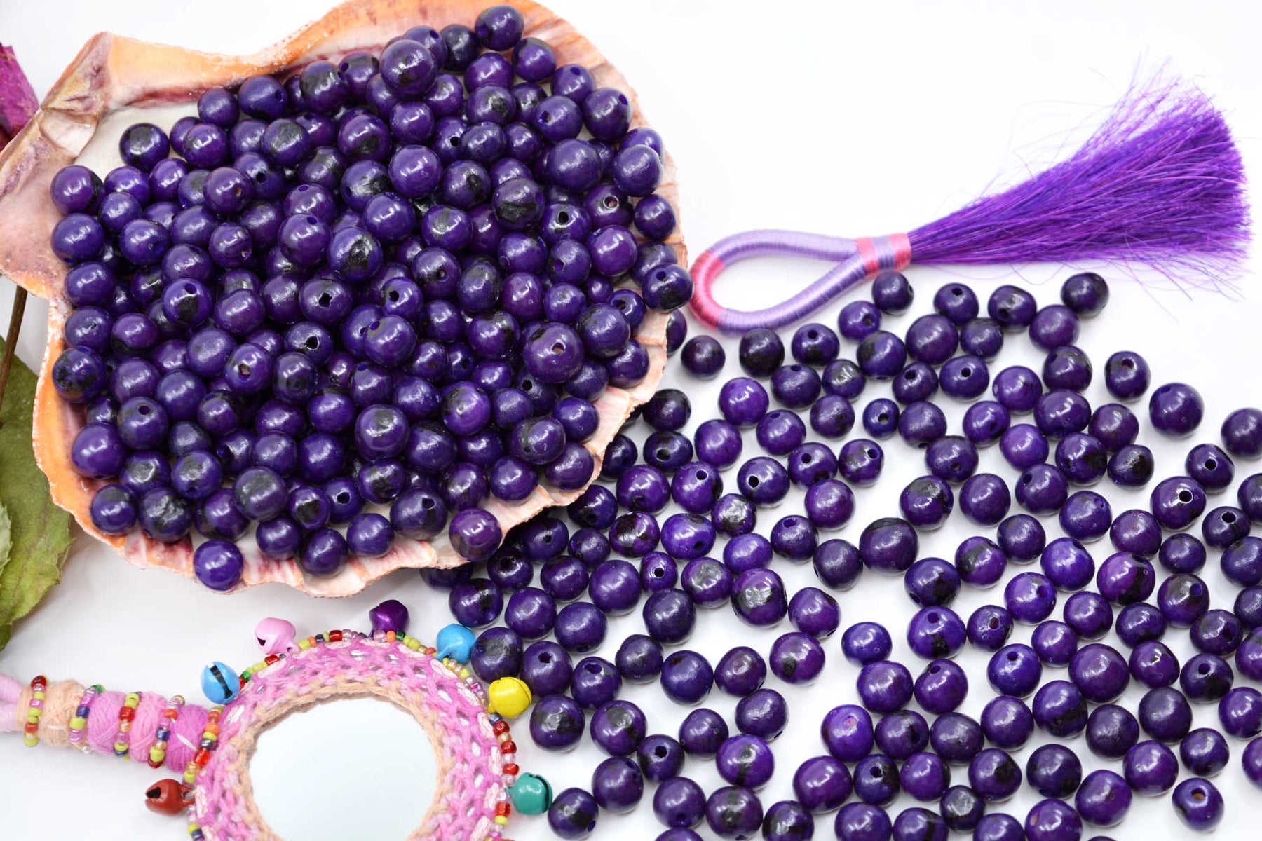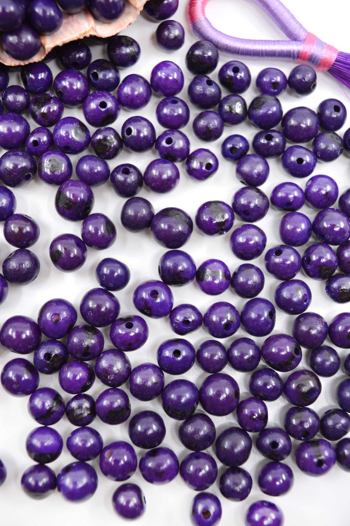 Bring the essence of the Amazon rainforest to your jewelry designs with these genuine Violet Purple Acai Beads — natural seed beads harvested, hand-drilled, and polished by artisans in the Amazon. These ethically sourced seeds are dyed a deep Violet Purple and lightly polished with a thin natural lacquer to preserve their unique markings.